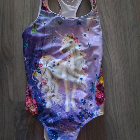 Lindex lasten uimapuku, koko 128. Uimapuvussa on leopardikuvio ja se on suunniteltu uintikäyttöön.