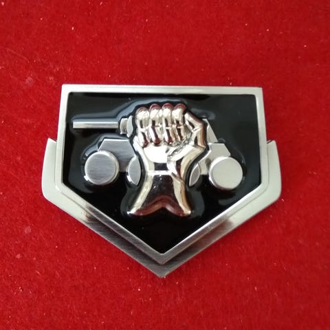 Pyöreä solki, materiaali messinki / tombakki. Keskellä Suomen vaakuna: miekkaa pitelevä leijona, jonka alla kaareva sapeli. Reunaa kiertää laakeriseppele.