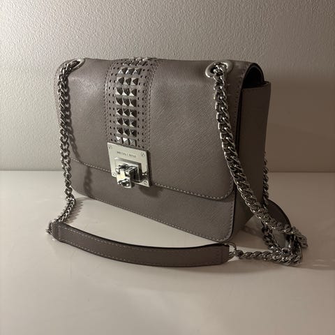 Myydään aito Michael Kors nahkainen käsilaukku värissä taupe. Laukussa on kantokahvat ja olkahihna, jossa ketjuyksityiskohtia. Sisätiloissa on vetoketjutasku ja muita lokeroita järjestämiseen. Mukana laukun oma dust bag.