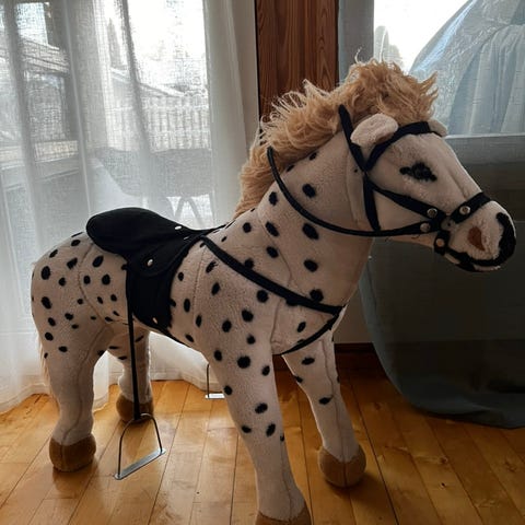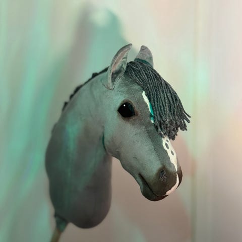 Säteilevä hobbyhorses tekemä keppihevonen. Myydään täytteillä ilman keppiä.