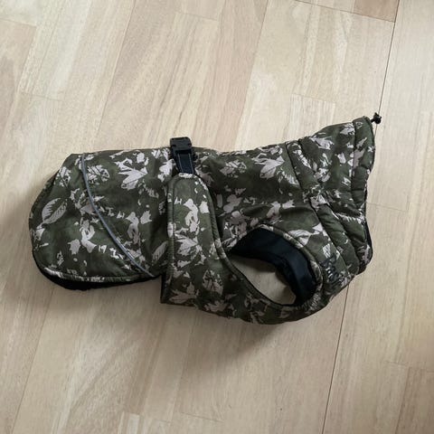 Erittäin hyvä lämmin takki koiralle . Koko 52. Suojaa myös jalat takaa.