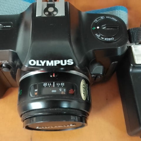 Mukaan kuvassa näkyvä objektiivi sekä hihna, ei ole testattu muuten kuin että automatiikka toimii (käyttää eri suljinnopeuksia eri valaistuksessa). Lasissa on naarmuja.