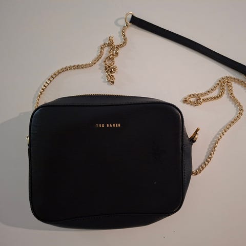 Ted Bakerin suloinen pikkulaukku. Nahkaa, rusetti yksityiskohta, irroitettava ja säädettävä olkahihna. Erinomainen kunto, vain 1-2 kertaa ollut käytössä. Tietääkseni tämä malli ei ole enää muualla myynnissä. Dustbag mukana.