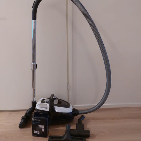 Muuten täysin ehjä, mutta tähän tulee tilata uusi pölysäiliön suodatin. Tämä on vaurioitunut, minkä vuoksi imuteho on heikko.