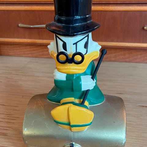 Myydään 3D tulostettu Roope ankan kävelykeppi pieneen säästöpossun (korkeus 15cm)