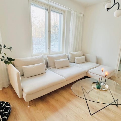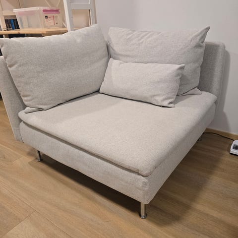 Ostetaan Ikean Söderhamn divaani + tuoliosa. Jos käsinoja mukana, niin se plussaa. Kuva napattu Ikean sivuilta, jotta näkee mitkä osat tarvitaan.