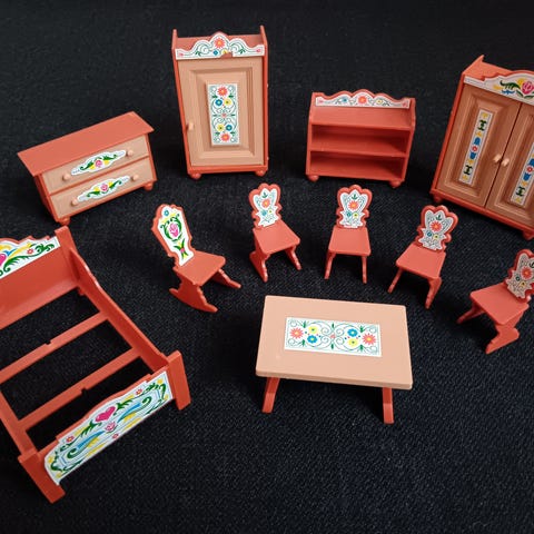 Upeat vintage-henkiset, metalliset nukkekodin kalusteet. Muut ehtiä, mutta jokaisen kolmen alimman huonekalun yksi jalka katkennut. Tämä huomioitu hinnassa. Noudettavissa Vehmaisista tai arkisin myös Ylöjärveltä ja voin postittaa +pk.