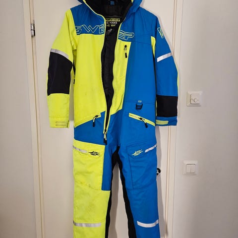 Sweepin laadukas Suomalainen kelkka/kuorihaalari. Oikean alusasun kanssa todella lämmin ja kevyt puku. Kosteus ja tuulisuojattu, lumilukot käsissä ja jaloissa, sisällä kätevät henkselit.