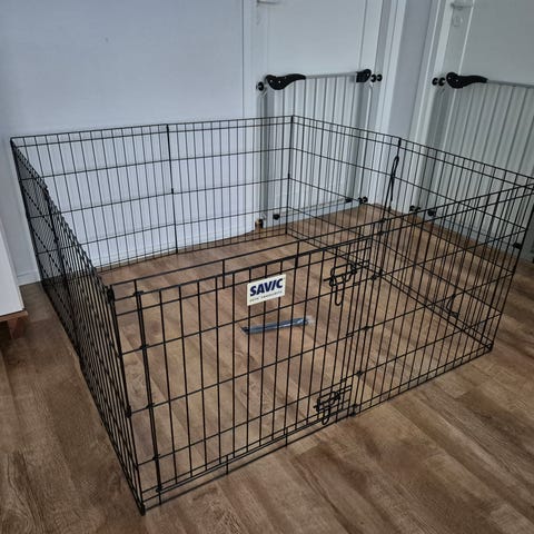 Myydään pentuaitaus 61x61cm, 8 elementtiä. Yhdessä portti kahdella salvalla. Hyvässä käytetyssä kunnossa, ei vääntymiä.