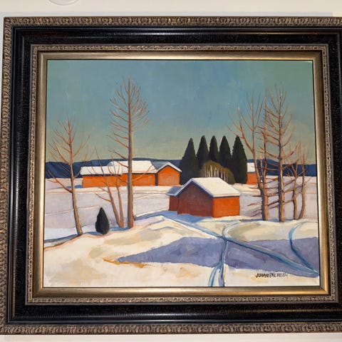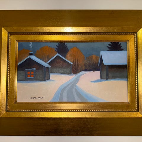 Juhani Palmu öljyvärimaalaus Talvinen Suvanto v. 1984