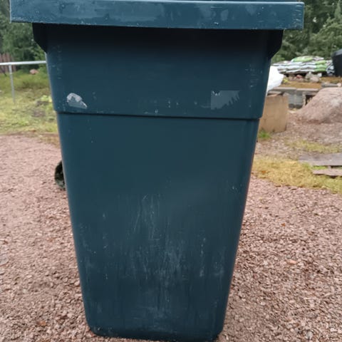 240 litran antrasiitti roska-astia, kyljessä pieni vekki muttei haittaa käyttöä.