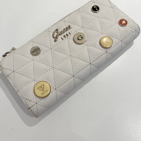Käyttökelpoinen Guess laukku. Nahka kulunut paikoitellen (katso kuvat) ja etupuolen nauha yhdestä kohdasta irronnut, näkyy ensimmäisessä kuvassa.