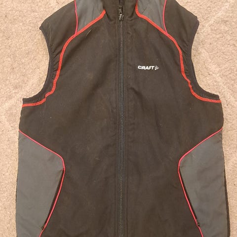 Tässä ilmoituksessa Craftin musta-harmaa hiihtoliivi koossa 130cm. Sisällä fleece-vuori.