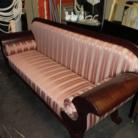 Hakusanat: kukkakuvio, mukavuus, 1800-luku, eurooppalainen, naarmut, vintage huonekalut, käytännöllisyys, eleganssi, kuluma, puu, sohva, antiikki, vintage, sisustus, verhoilu, biedermeier