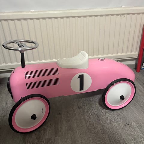 Koristeena huoneen nurkassa ollut potkuauto seuraavalle Eeli nimiselle.