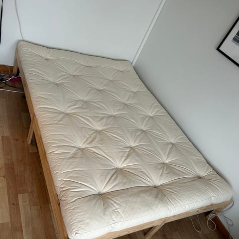 Futonin voi ostaa nykykunnossa edullisemmin tai voin viedä sen kuivapesuun ennen luovutusta, jolloin pesun hinta sovitaan myyntihintaan, sovitaan tämä erikseen.