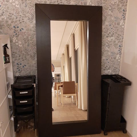 Myydään iso peili tarpeettomana. Hyvässä kunnossa, yhdessä kulmassa pieni jälki josta kuva erikseen. Nouto Hyrylä.