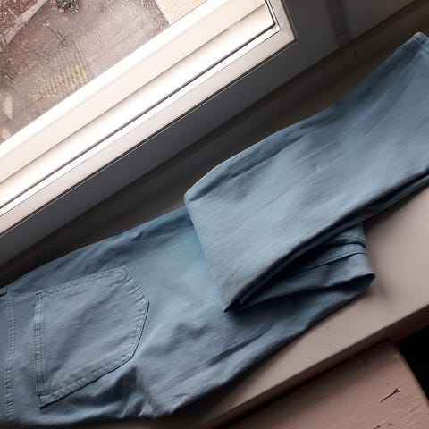 Aito Kingstar farkkuhame, vintage,taskut sivulla ja takana,koko 38, väri sininen ja materiaali tukeva 100% cotton.
