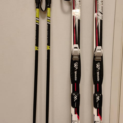 Vähän käytetty hiihtopaketti (monot kuin uudet). Sukset 100cm siteineen, sauvat 75cm ja nnn-monot koko 29 (pientä kokoa, sopii n. 28 jalkaan).
