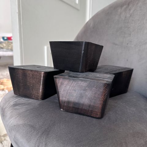 Myydään puiset Askon sohvan-/ sängyn jalat. Väri musta, helposti käsiteltävissä uuden väriseksi, kun puuta. Ruuvit tukevasti kiinni, ei heilu tai huoju. Ruuvien päällä suojana kumitulpat, kun ollut säilytyksessä, ettei jalkoihin tule jälkiä. Hinta yhteensä.