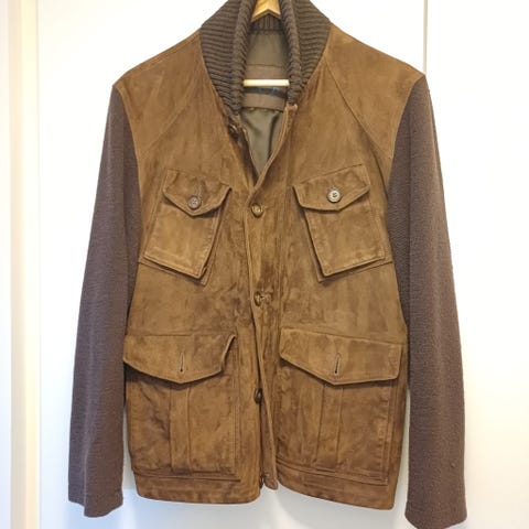 Tyylikäs miesten Hunter’s-takki italialaiselta Jacob Cohën -merkiltä. Takki on valmistettu Casentino-villasta (keittovilla), ja siinä on laadukkaat mokkanahkaiset yksityiskohdat kauluksessa, etupaneelissa, sivukiristimissä ja hihansuissa. Kuten monissa Jacob Cohën -vaatteissa, Casentino-villa on tarkoituksellisesti käsitelty ja kevyesti ”patinoitu”, jotta kankaaseen saadaan kulunut, vintage-henkinen ilme, joka tuo syvyyttä ja luonnetta. Takki on kokonaan käsintehty Italiassa, ja sen huomaa — rakenne on jämäkkä ja painava, ja kokonaisuus huokuu aidosti vintage-henkistä tyyliä.