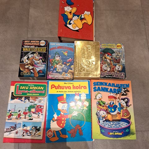 Myydään pehmeäkantisia Aku Ankka kirjoja / sarjakuvakirjoja sekä satasivuiset kirjoja.