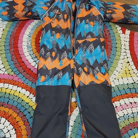 Pieneksi jäänyt toppahaalari. Takapuolessa todella pientä kulumaa näkyy.