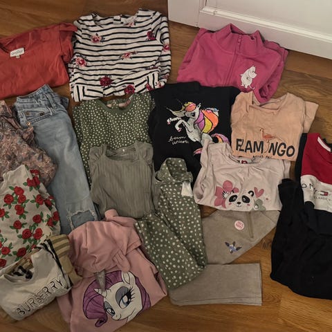 Erittäin siistikuntoinen vaatesetti tytölle. Osa ollut hyvin vähällä käytöllä. Pesty hajusteettomalla pesuaineella.