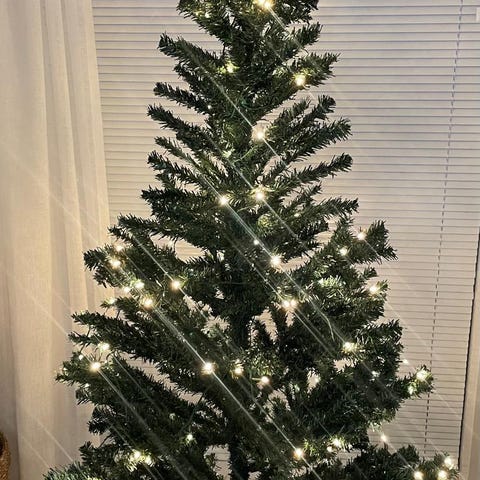 Kuusi myydään kokonaisena, kaikkine koristeineen ja seppeleineen, kuten kuvassa näkyy. Voit pystyttää sen ja nauttia siitä heti; lisäostoksia ei tarvita.