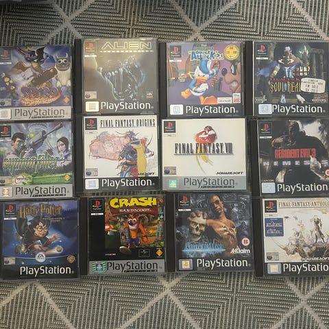 PlayStation pelit kokoelma sisältää useita eri pelejä eri genreistä. Pelit ovat fyysisinä levyinä, mukana mm. ajopelit, toimintapelit ja seikkailupelit. Kokoelma soveltuu PlayStation-konsolille ja tarjoaa monipuolisen valikoiman pelattavaa eri pelaajille. Mukana 2 kpl Konamin harvinaisempaa hyväkuntoista valopistoolia ja 4 näihin yhteensopivaa peliä, ilmoituksen kaikki pelit ovat toimivia ja sisältävät myös ohjekirjan. Pistoolit vaativat toimiakseen crt kuvaputkitelevison.