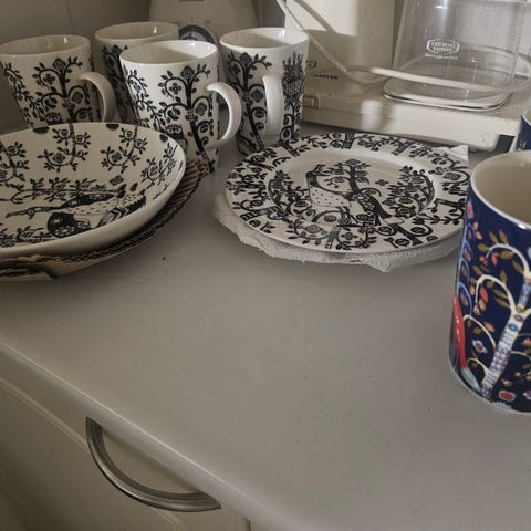 Iittala astiasto lautaset ja mukit sinivalkoinen