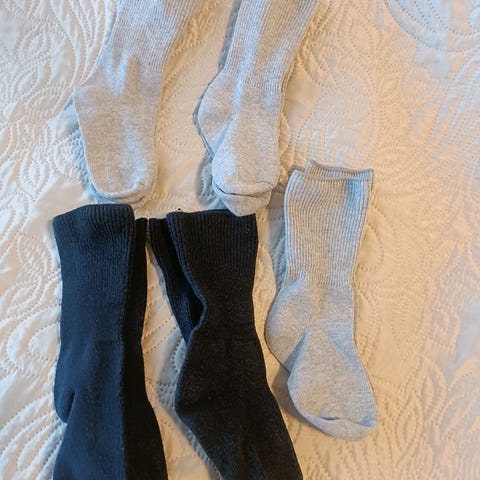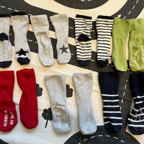 Polarn o pyret jarrusukkia koko 19/21. 3 paria lilan eri sävyt ovat hiukan nukkaisia, muuten hyväkuntoiset. Jarrut pitää edelleen loistavasti. Harmaat 2 paria konttaussukkia eli jarrut tulee myös varpaiden päälle. Yhdessä sukassa pieni tahra pohjassa. Tämä tahra näkyy toisessa kuvassa. Muuten tosi hyvässä kunnossa ja jarrut pitää edelleen loistavasti. 7€. Nouto Tammistosta Vantaalta tai postitus toridiilinä.