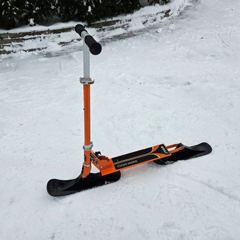 Stiga snowkick. Ohjaustangon korkeutta helppo säätää.