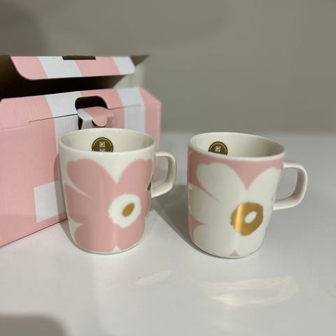 Myydään uudenveroisessa kunnossa olevat Marimekko juhla unikko mukit 2,5dl 2kpl. Musta, valkoinen, kultainen