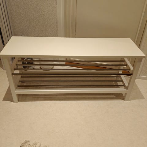 Metallijaloilla oleva penkki. Korkeus 48 cm, leveys 36 cm, pituus 90 cm. Vain nouto.