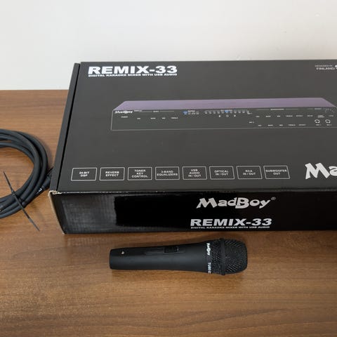 Madboy karaokesoitin, langaton mikki ja Behringer aktiivikaijutin