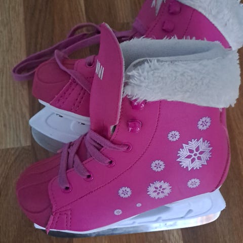 Siistikuntoiset luistimet kokoa 32. Vähän nuhjua valkoisissa osissa, vaatii teroitusta.