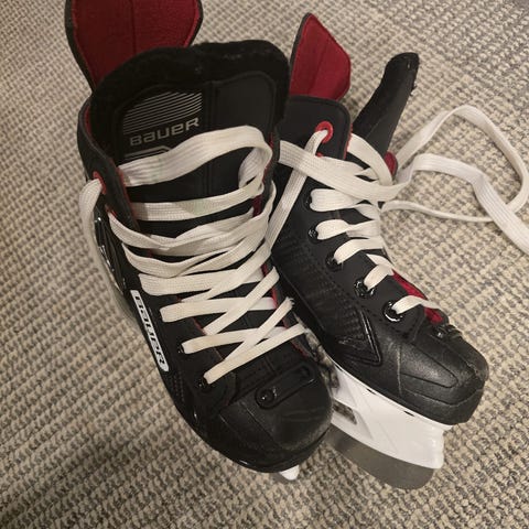 Bauer lasten hokkarit, koko 31. Luisteltu muutaman kerran hallin jäällä. Hyvä tuki nilkalle ja mukava lesti, Uudenveroisessa kunnossa. Teroitettu, suoraan käyttöön valmiina.