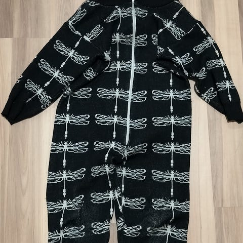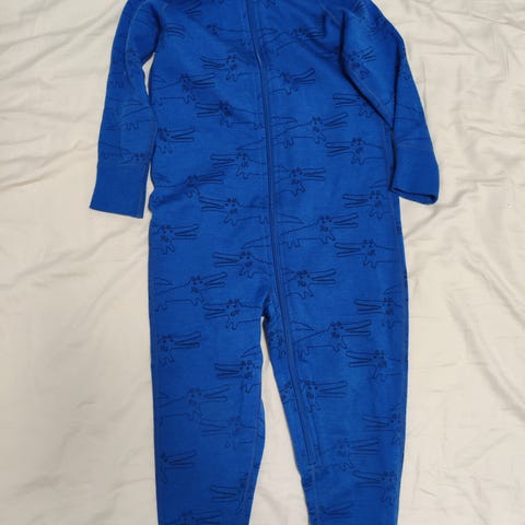 Kainon ihana merinovillainen norppakuvioinen villahaalari koossa 100. Sanoisin, että vastaa kokoaan, ei ainakaan ole todella väljä.
