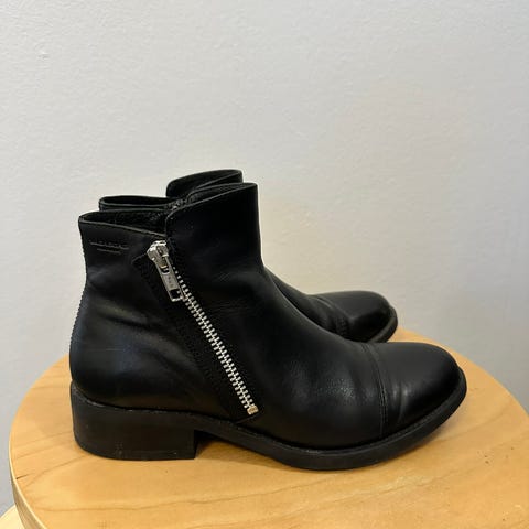 Vagabond nahkaiset nilkkurit, koko 36. Kengät ovat mustat ja valmistettu nahasta. Nilkkureissa on vetoketju sivulla ja korkea kanta.