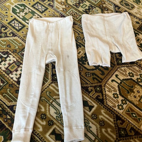 Ruskovillan lasten alushousut / kerrastohousut. Valmistettu 70% silkistä ja 30% merinovillasta. Koko 90 ja väri luonnonvalkoinen. Hyvässä kunnossa ja ehjät. Joitakin nyppyjä toki on.