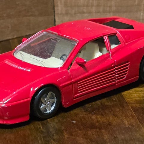 Ferrari 456 GT pienoismalli, punainen väri, valkoinen sisustus. Malli esittää urheiluautoa, yksityiskohtainen muotoilu ja pyörät. Sopii keräilyyn tai esille laitettavaksi.