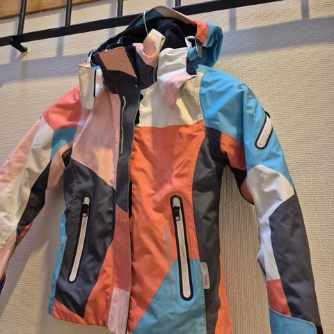 Reima lasten laskettelutakki koossa 122, väriltään kirjava. Valmistettu polyesteristä. Irroitettava huppu. Lumilukko. Hissikorttitasku hihassa. Tarrat ja vetoketjut hyvässä kunnossa.