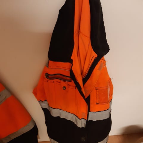 Siistit ja hyväkuntoiset heijastinvaatteet kokoa 58. Kuvissa sisällä nykyinen käyttäjä koko 188 ja 110kiloa. Sopii siis riskimmällekin ja ovat lämpimät. Takissa muutama lievä tahra mitkä taitaa kyllä lähteä pesussa,ovat tulleet säilytyksessä mutta ei haittaa käyttöä.