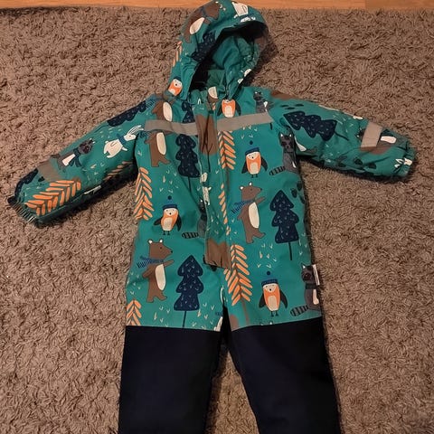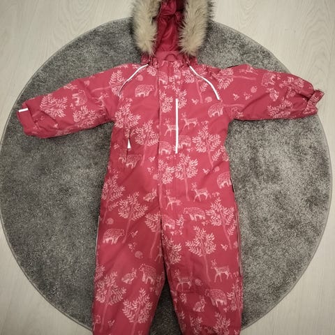 Jonathan merkkinen talvihaalari kukkakuvioilla. Käytön jälkiä on, mutta ehjä ja siistissä kunnossa. Irrotettava huppu ja hupun karvan saa myös erikseen irti. Lahkeiden lenksujen napit molemmista irronneet.