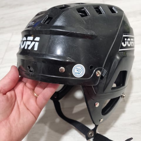 Lasten JOFA Jääkiekko kypärä. Tarrat kuluneet, mutta muuten täysin kunnossa.