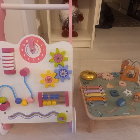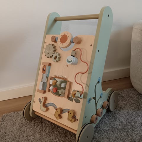 Myydään uusi kävelykärry. Ei ole käytetty kertaakaan. Kärryssä myös palikoista koottava palapeli.