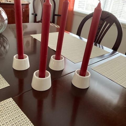 Myydään hyväkuntoiset punaiset kynttilän jalat kruunukynttilälle. Lasia. Jalan korkeus on noin 17cm. Pohjan halkaisia on noin 8cm. Nouto tai ostajalle toimituskulut.