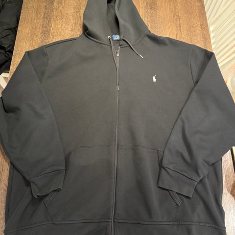 Ralph Lauren Polo huppari mustassa värissä, miesten koko 3XLT. Hupparissa on vetoketju edessä ja pieni logo rinnassa. Hupun naru puuttuu,muuten hyvässä kunnossa.