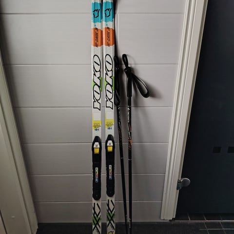 Käytön jälkiä löytyy mutta muuten ehjät sukset vaikka ensimmäisiksi suksiksi. Siteet NNN